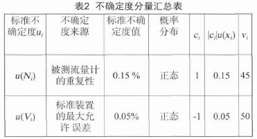 于廠家給出該氣體流量標準裝置的擴展不確定度U=0.25%;k=2。